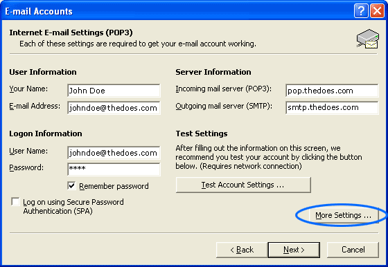 POP3 EMAIL CONFIGURATION - OUTLOOK 2002 / WINDOWS